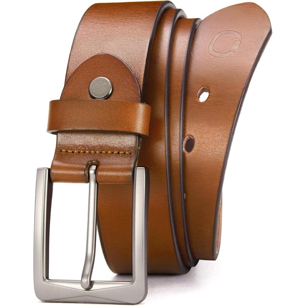 CHAOREN 1.5″ Mens Belts Leather – Italian Full Grain Leather Belts – Ideal for Casul Jeans & Work Wear(Brown)