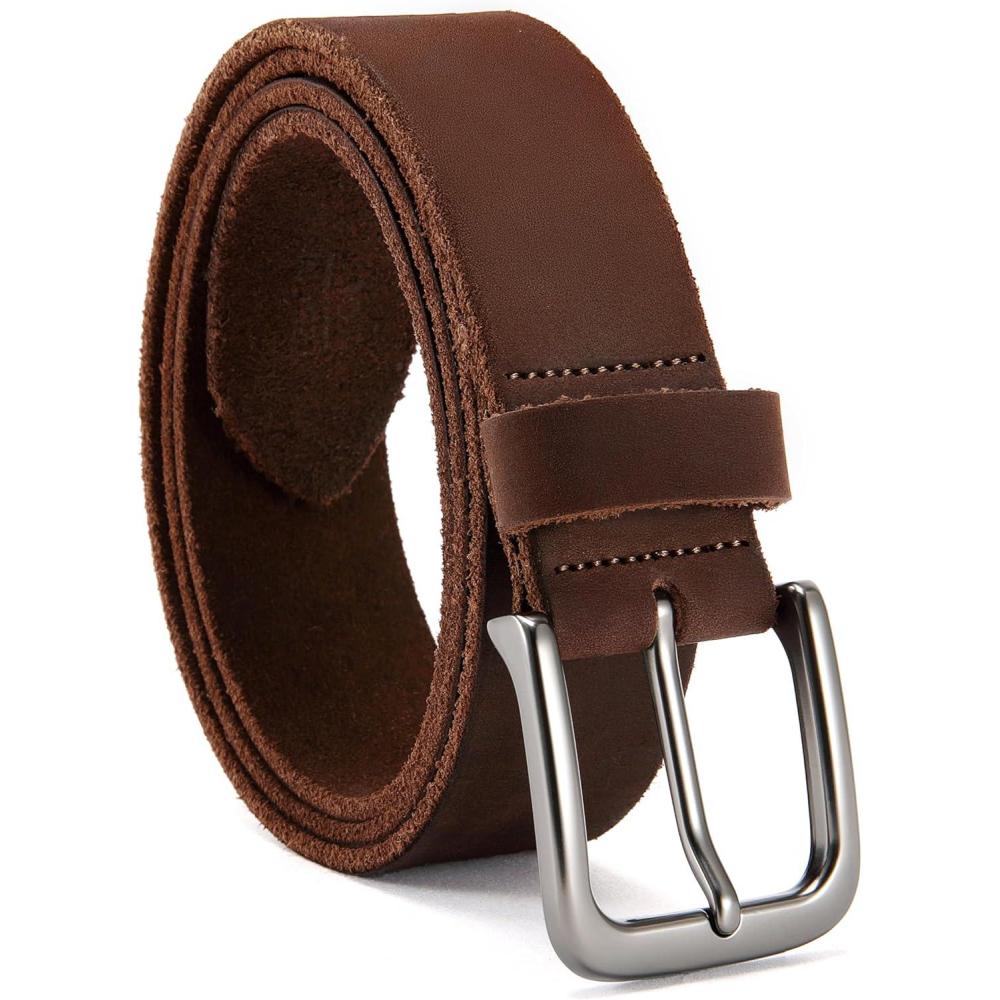 CHAOREN Full Grain Leather Belt for Men, Work Belts for Men Heavy Duty, Daily Wear for Jeans Pants(Dark Brown)