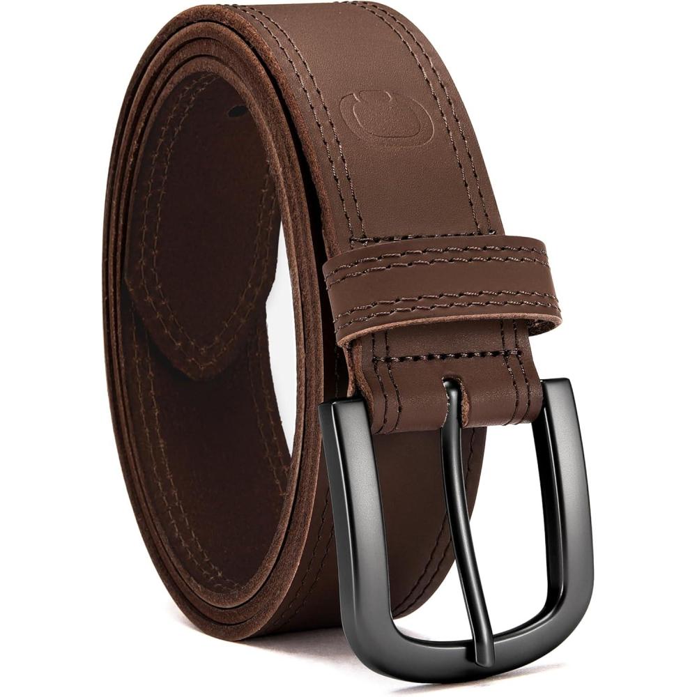 CHAOREN Full Grain Leather Belt for Men, Work Belts for Men Heavy Duty, Daily Wear for Jeans Pants(Versatile Dark Brown (Stitched))