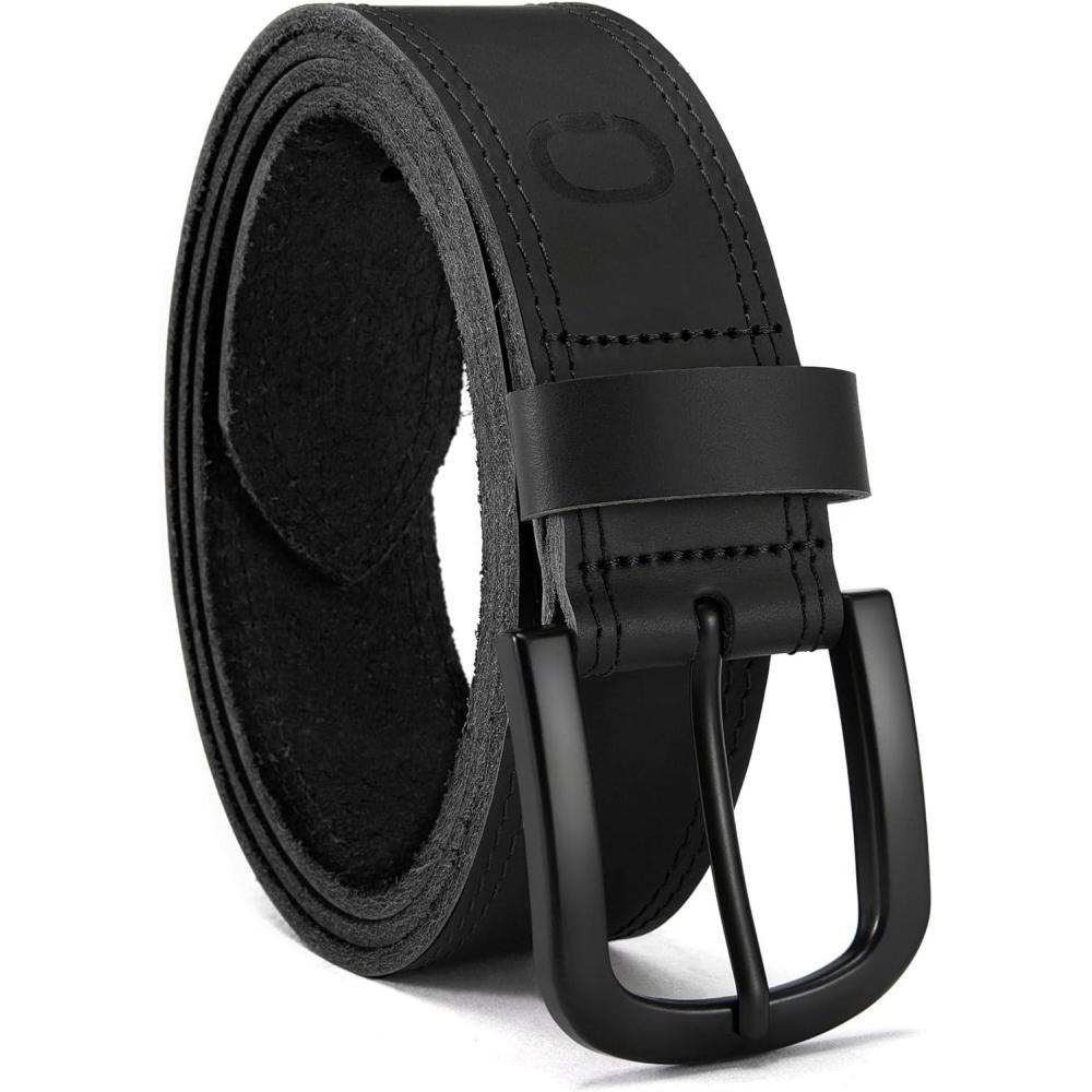 CHAOREN Leather Belts for Men, Mens Belts Casual,Everyday Full Grain Leather Belts for Jeans(Black)