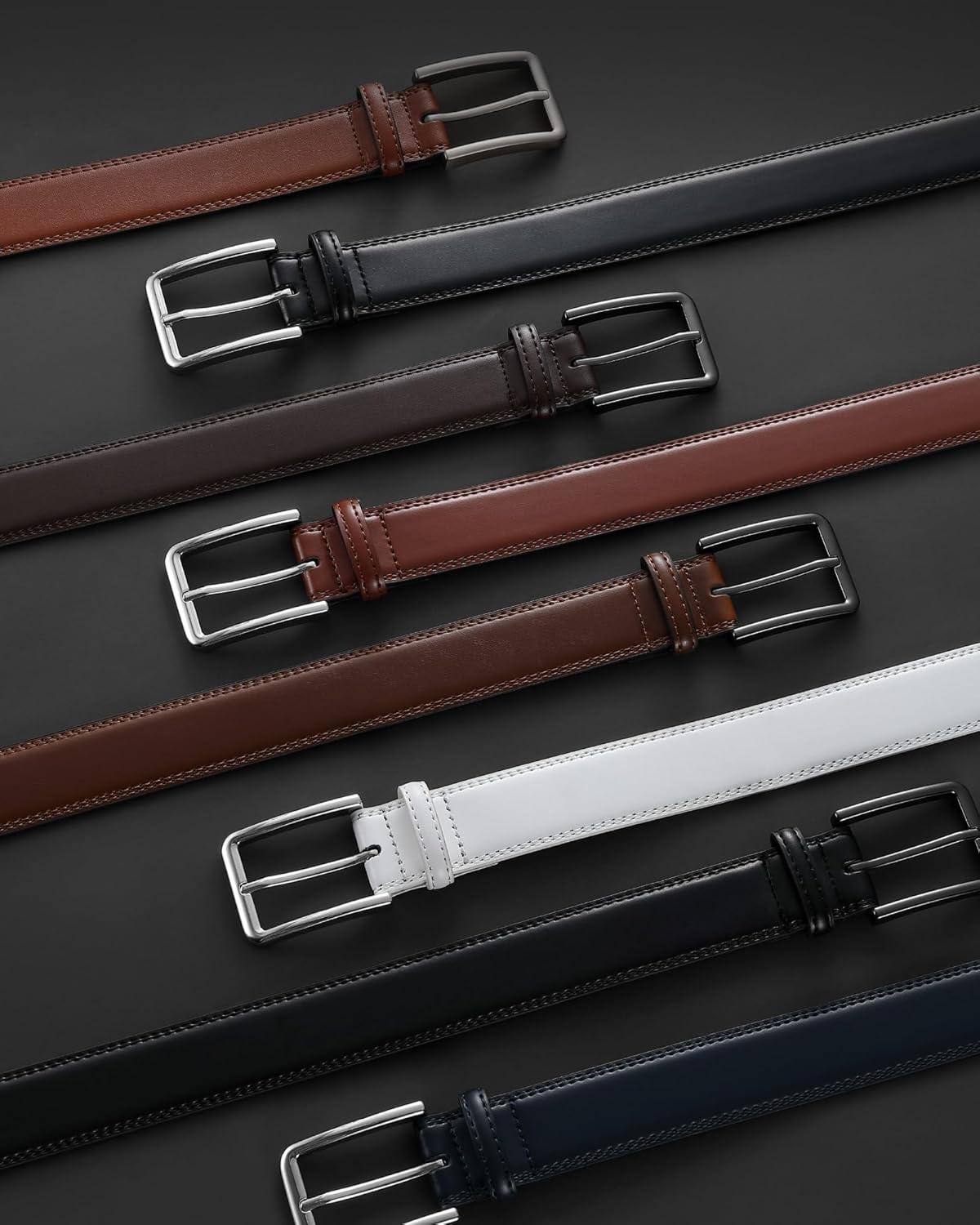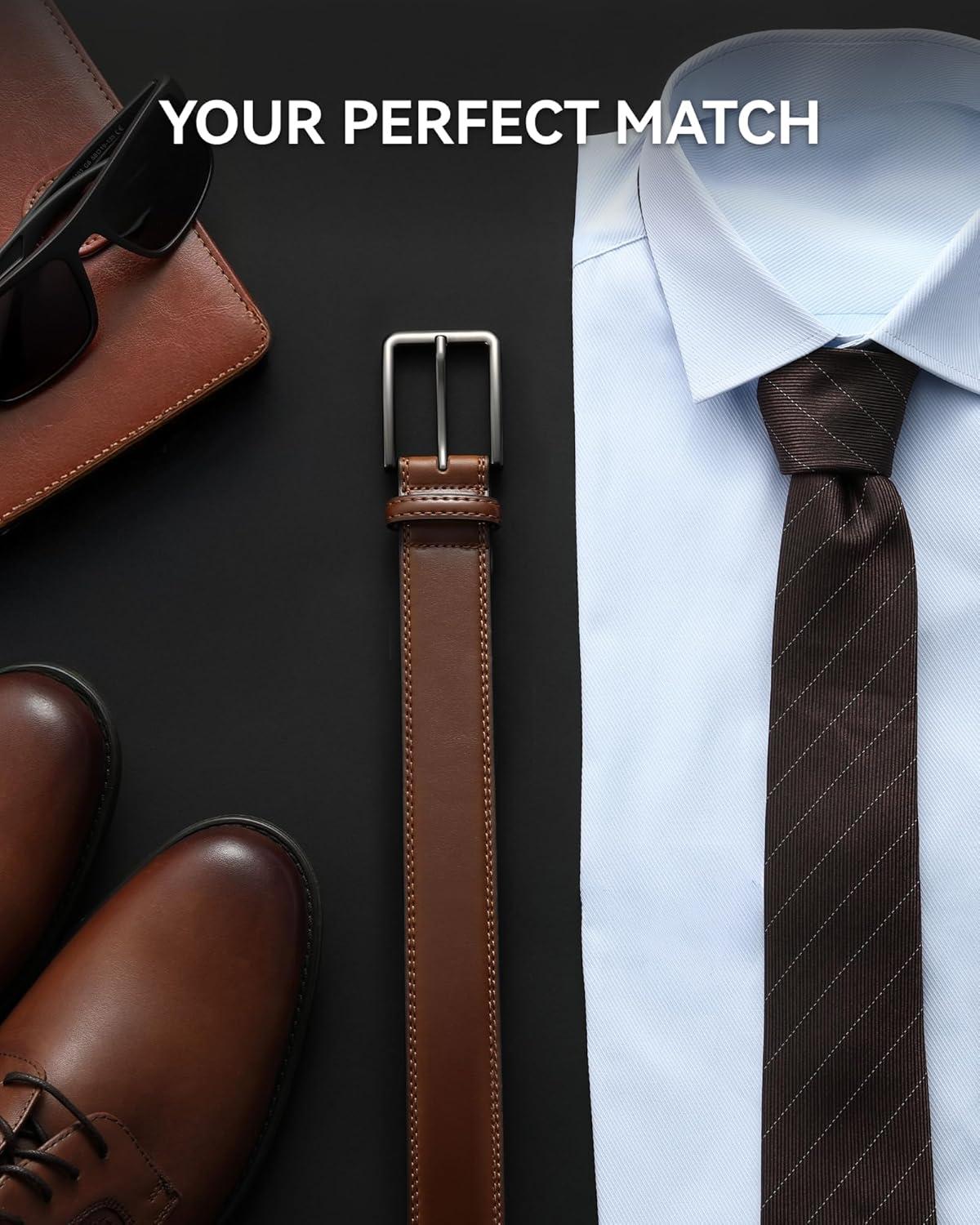 CHAOREN Leather Dress Belt Men 2 Pack – 1 3/8″ Mens Belts for Work Business Casual Jeans(Black/Cognac)