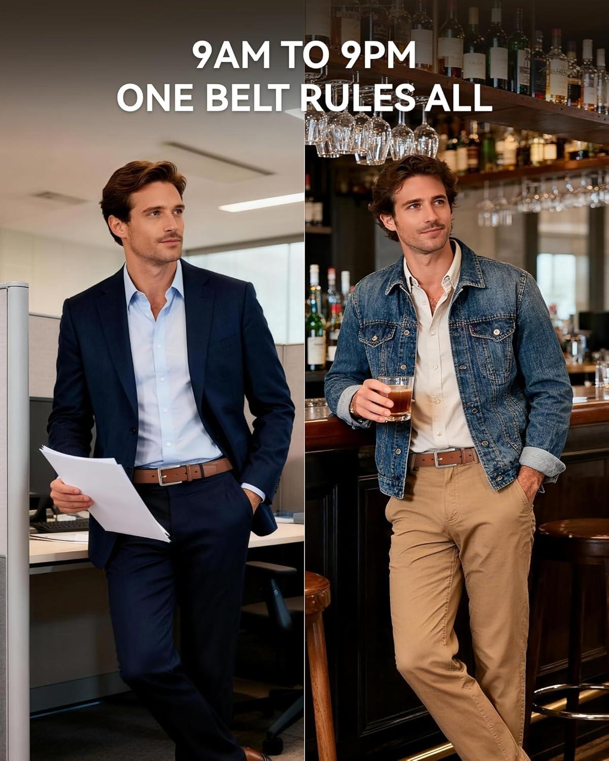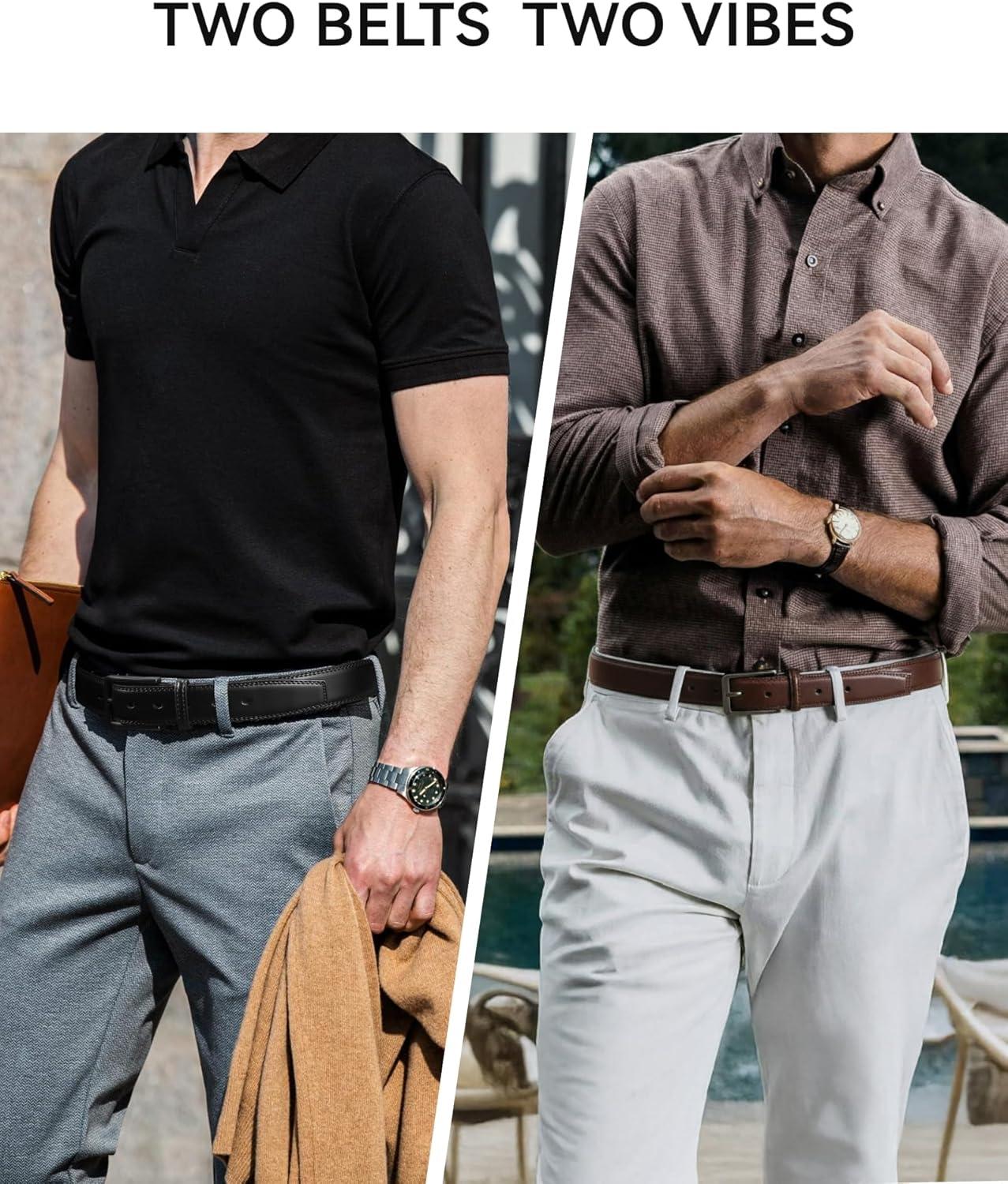CHAOREN Leather Dress Belt Men 2 Pack – 1 3/8″ Mens Belts for Work Business Casual Jeans(Classic Black/Brown)