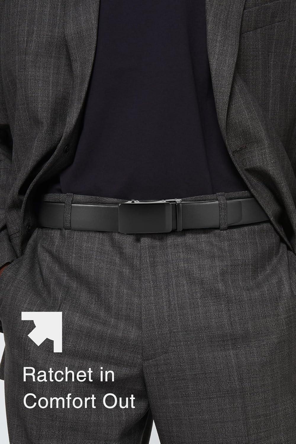 CHAOREN Leather Ratchet Belt for men 1 3/8″ for Dress Pants – Micro Adjustable Belt Fit Everywhere(Black-3)