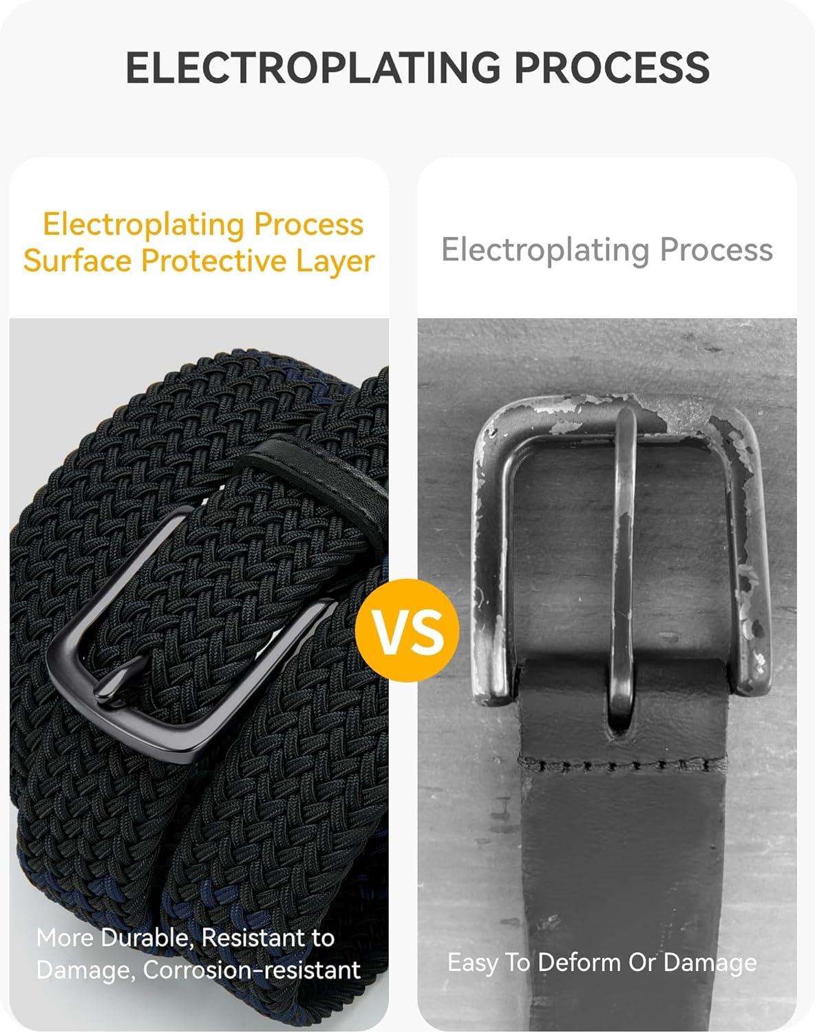 imageCHAOREN Mens Belt  Braided Stretch Golf Belt for Men 1 38quot Gift for Golf Pants Casual Shorts JeansBlack  Silver