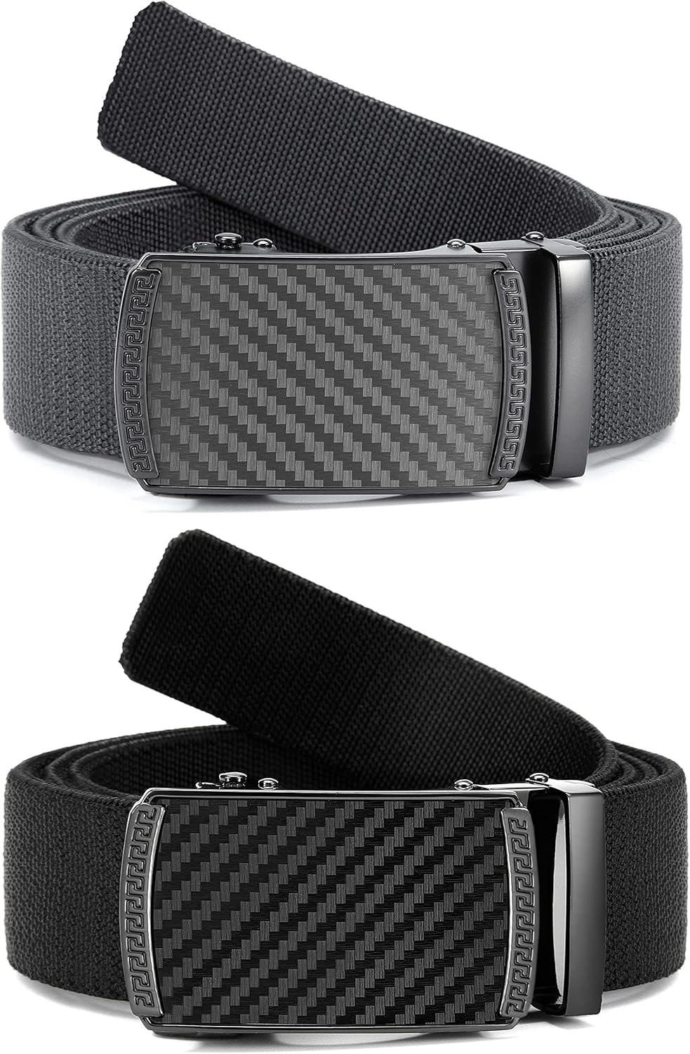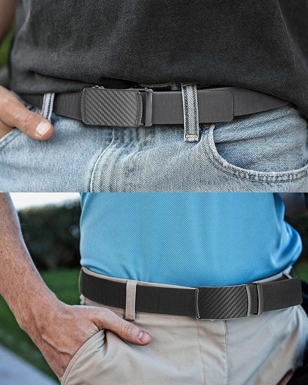 CHAOREN Mens Belt Stretchable - Elastic Golf Nylon Web Adjustable Belt - for Casual Wear(2pcs-carbon Fiber Imperial - Black & Grey)