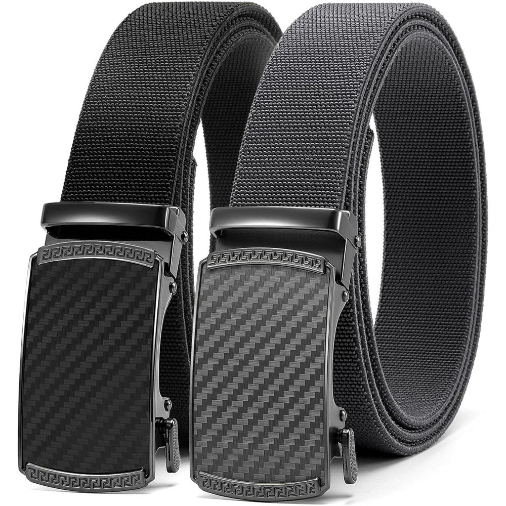 CHAOREN Mens Belt Stretchable – Elastic Golf Nylon Web Adjustable Belt – for Casual Wear(2pcs-carbon Fiber Imperial – Black & Grey)