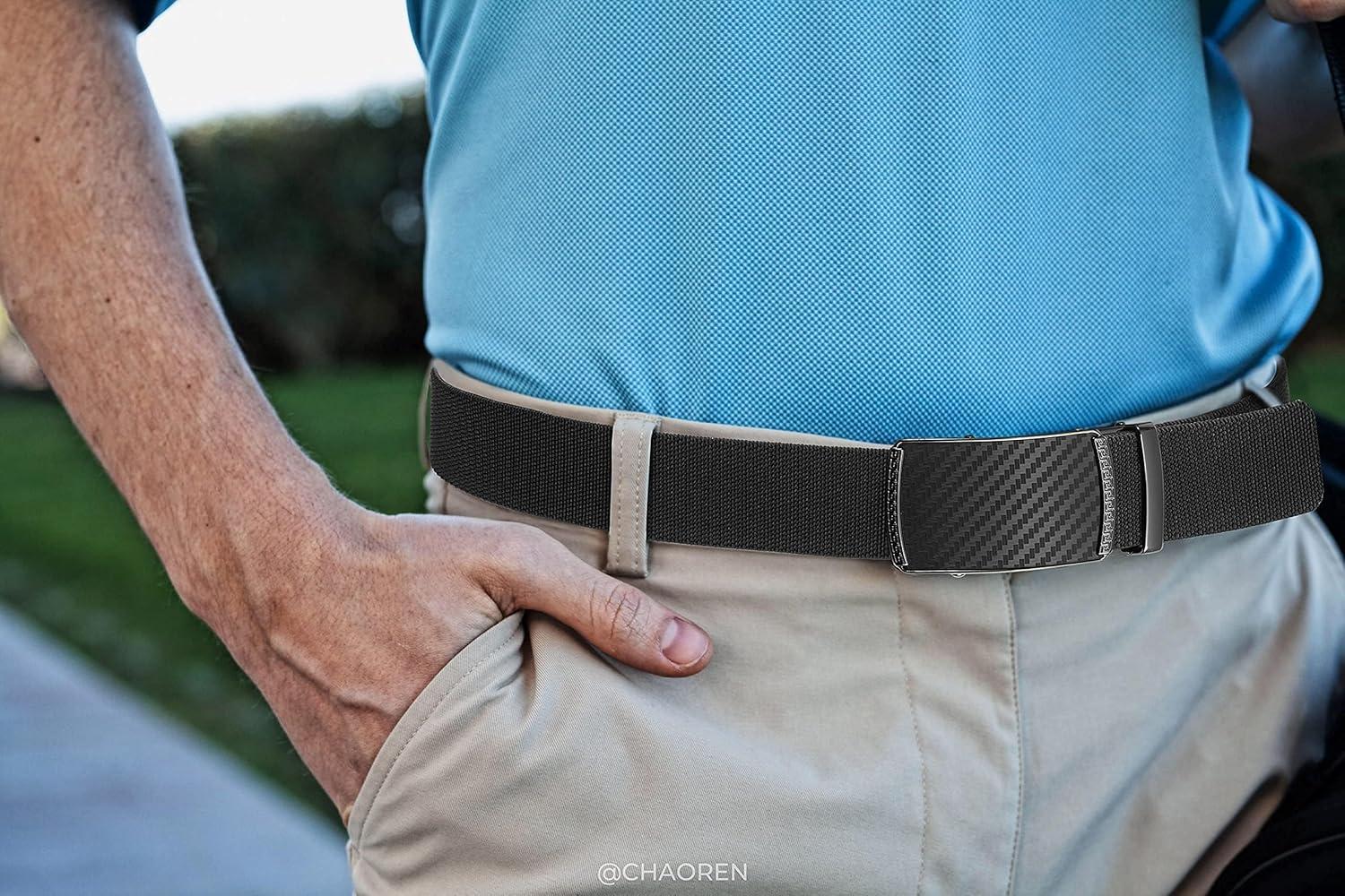 CHAOREN Mens Belt Stretchable – Elastic Golf Nylon Web Adjustable Belt – for Casual Wear(A-carbon Fiber Imperial/Black)