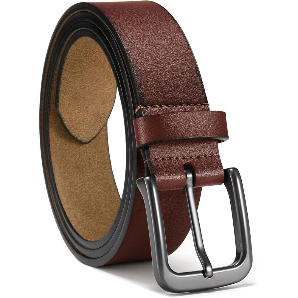 imageCHAOREN Mens Belts Leather  35mm Genuine Leather Belt for Jeans  Men Gift for Casual DressDark Brown