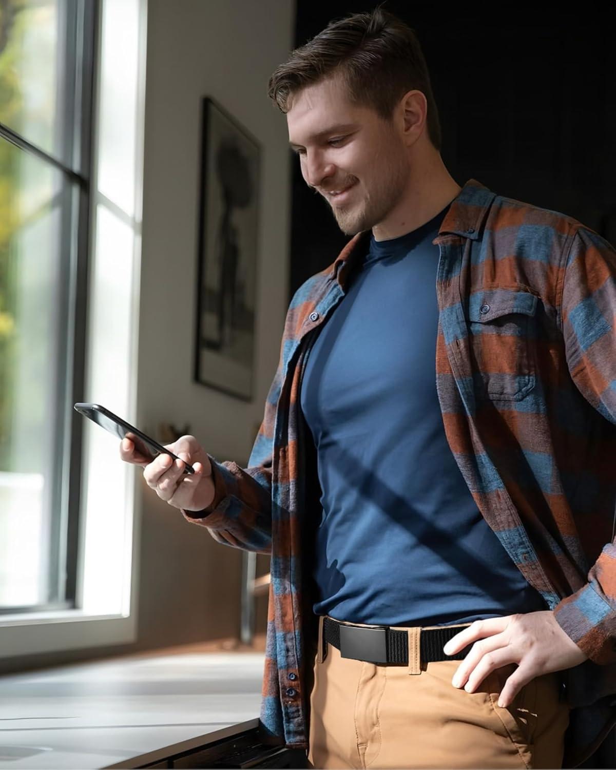 CHAOREN Nylon Ratchet Belts for Men – Adjustable Web Belt – Automatic Slide Buckle for Casual Golf Work(Black)