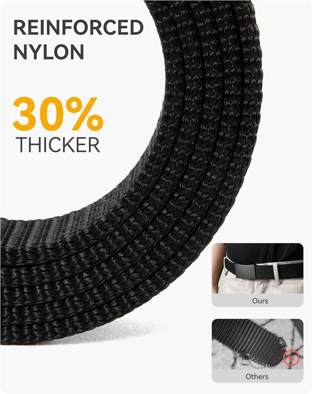 CHAOREN Nylon Ratchet Belts for Men - Adjustable Web Belt - Automatic Slide Buckle for Casual Golf Work(Bright Black)