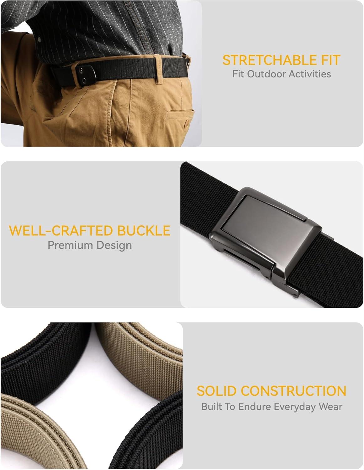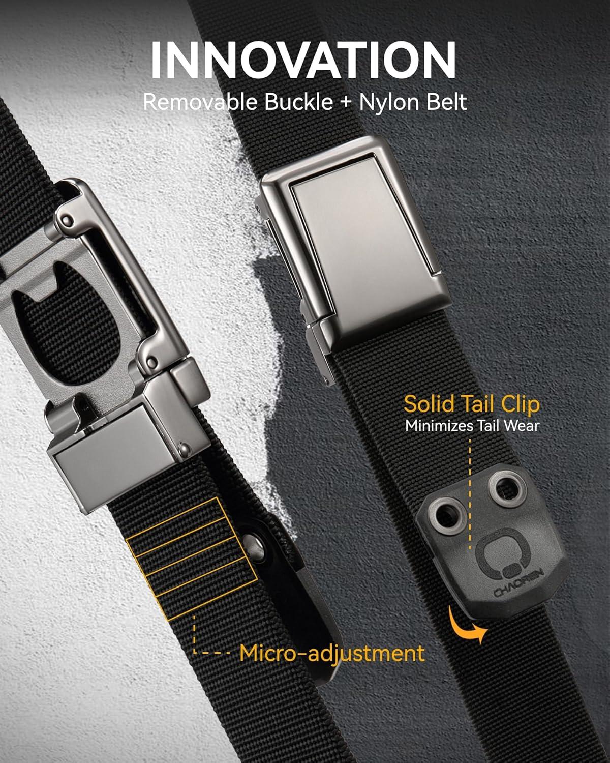 CHAOREN Ratchet Belts for Men 2 Pack – Casual Web Nylon Mens Belt 1 3/8″ – Automatic Adjustable Buckle Fit Jeans(Black and Grey/Carbon Fiber Buckle)