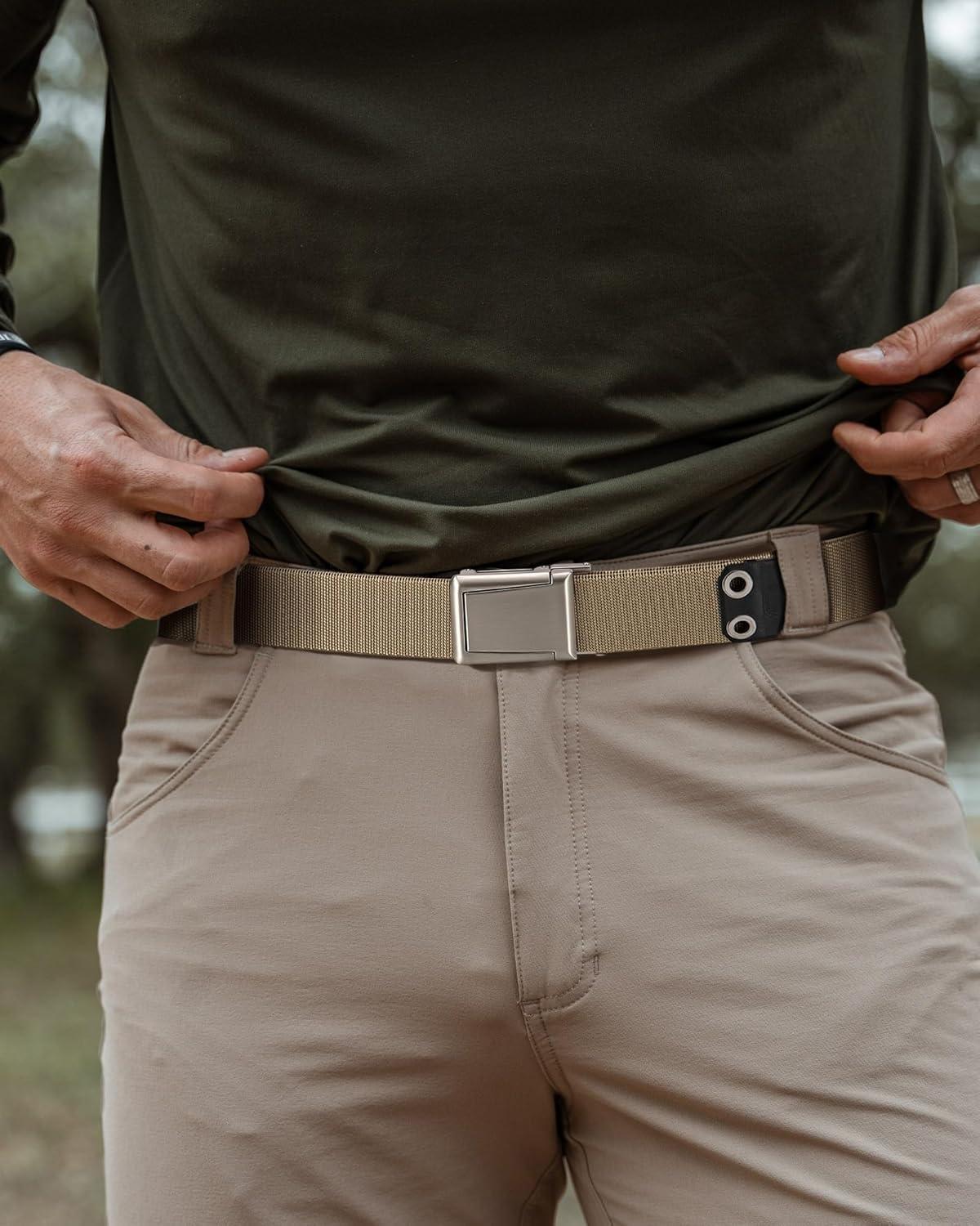 CHAOREN Tactical Belt Men – 1.5″ Stretch Nylon Gun Belts for Mens – Quick Release Slide Buckle for Military Work EDC Hiking(Khaki)