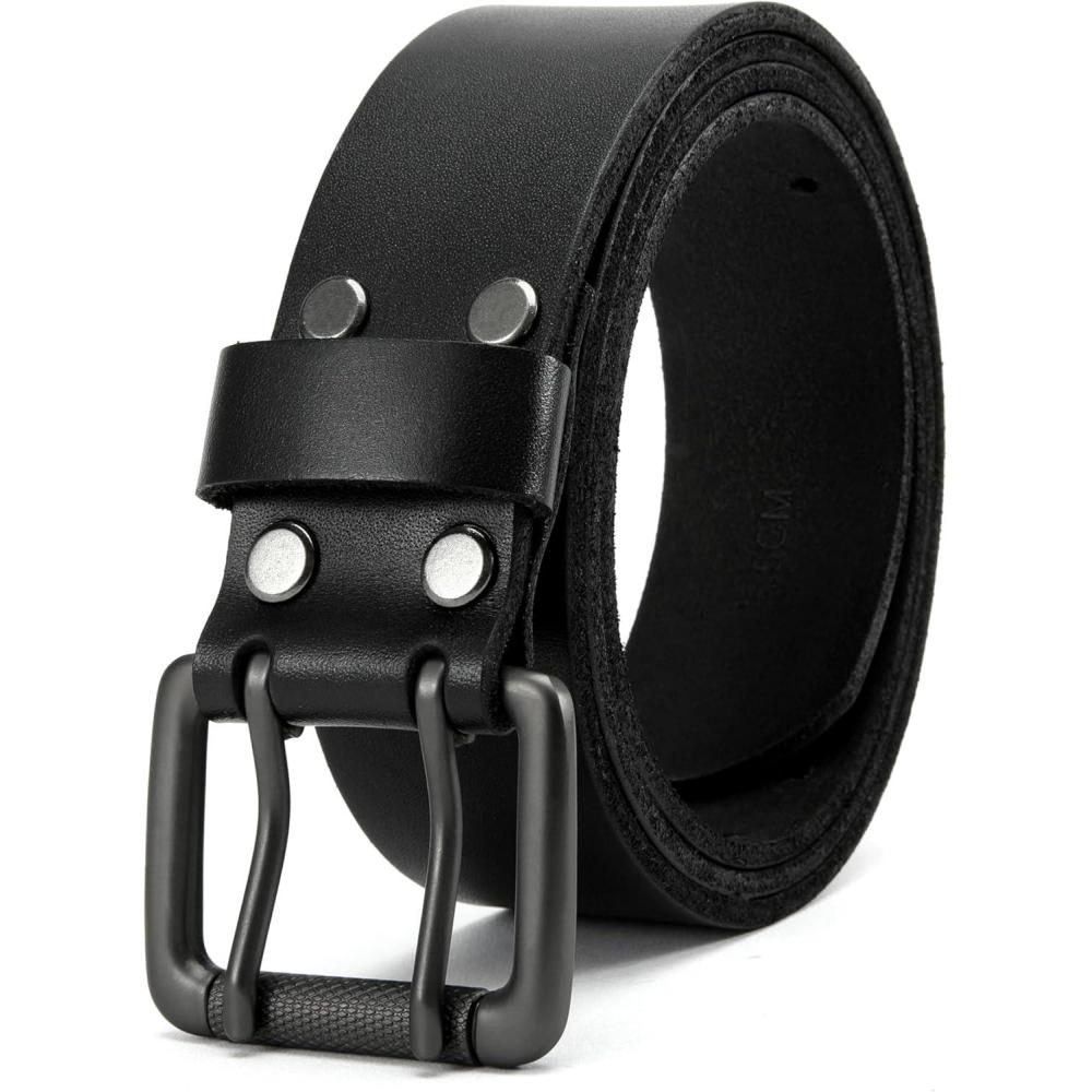 CHAOREN Work Belts for Men Heavy Duty – 1.5″ Full Grain Leather Belt Casual – Fully Adjustable, Double Prong(Casual Black)